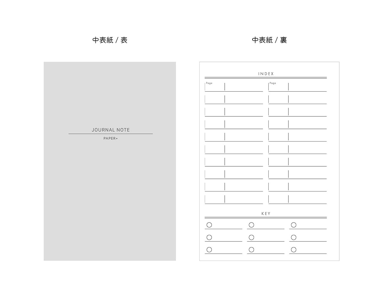 ・中表紙にINDEXとKEYの記入欄