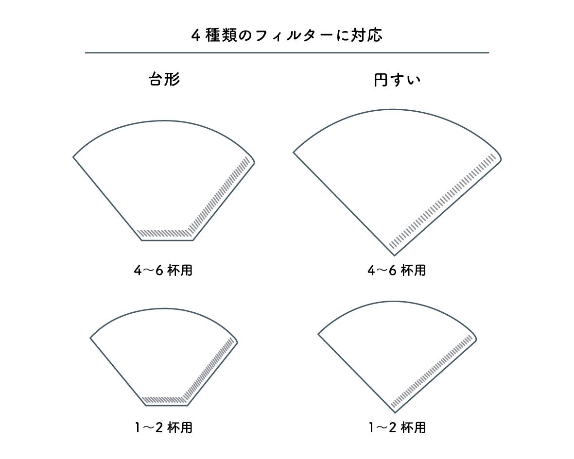 4種類のフィルターに対応しているので、お好みのフィルターを