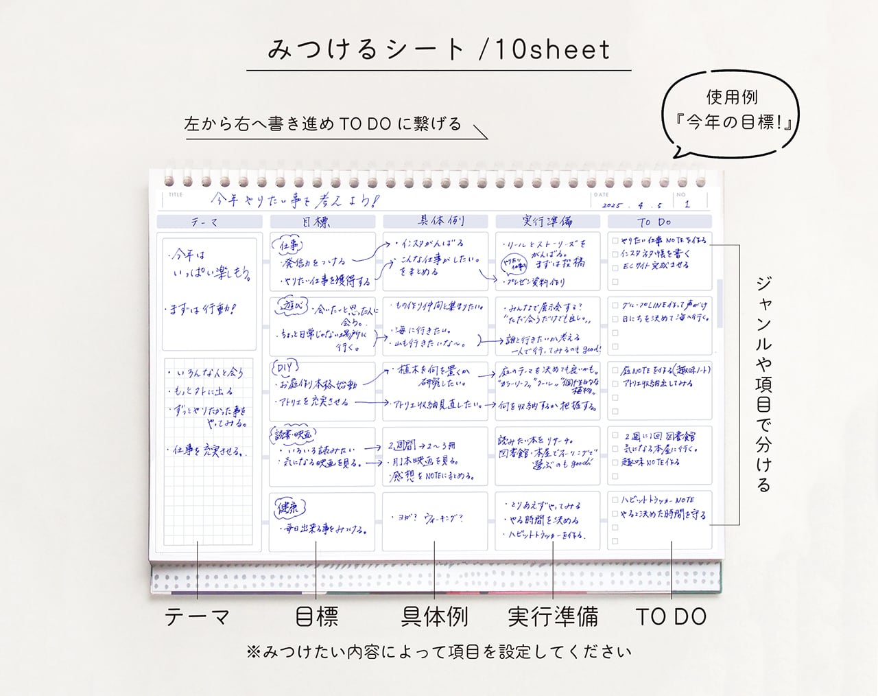 書き込む事で頭の中を整理するノートです。